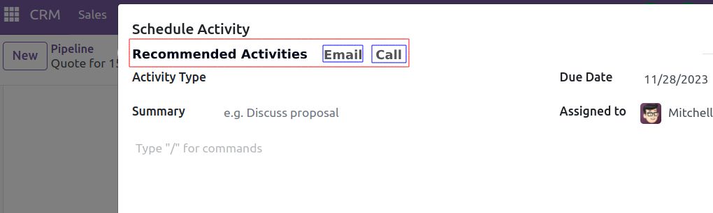 Odoo CRM helps you organize your sales activities: track leads, close opportunities and get accurate forecasts. Keep opportunities organized with the pipeline and manage your day-to-day activities with meetings and next activities.