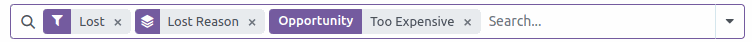 To retrieve lost opportunities and do actions on them (send an email, make a feedback call, etc.), select the Lost filter in the search bar.
